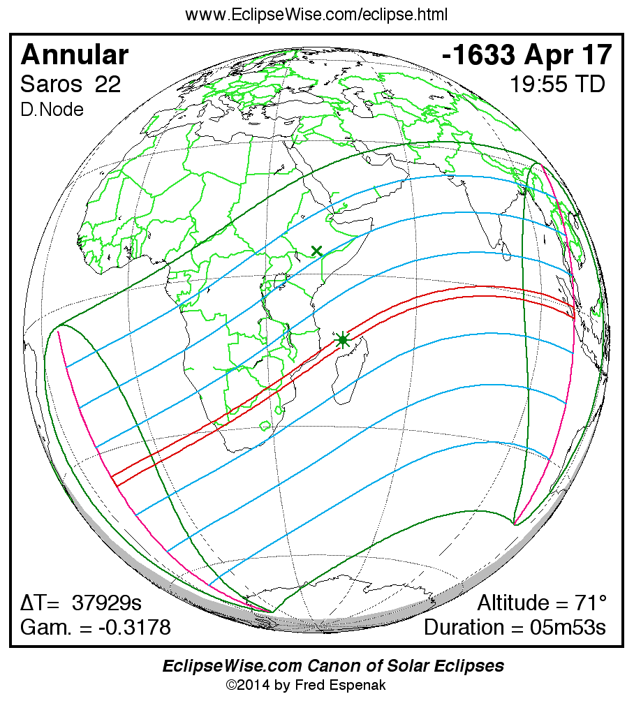 Annular Solar Eclipse of -1633 Apr 17 (1634 Apr 17 BCE)