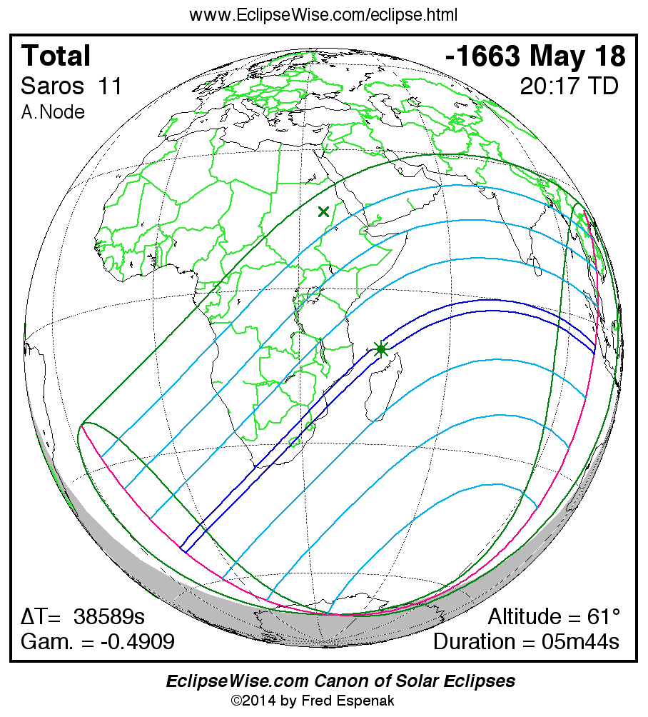 - Google Map: Total Solar Eclipse of -1663 May 18 - interactive map of the eclipse path