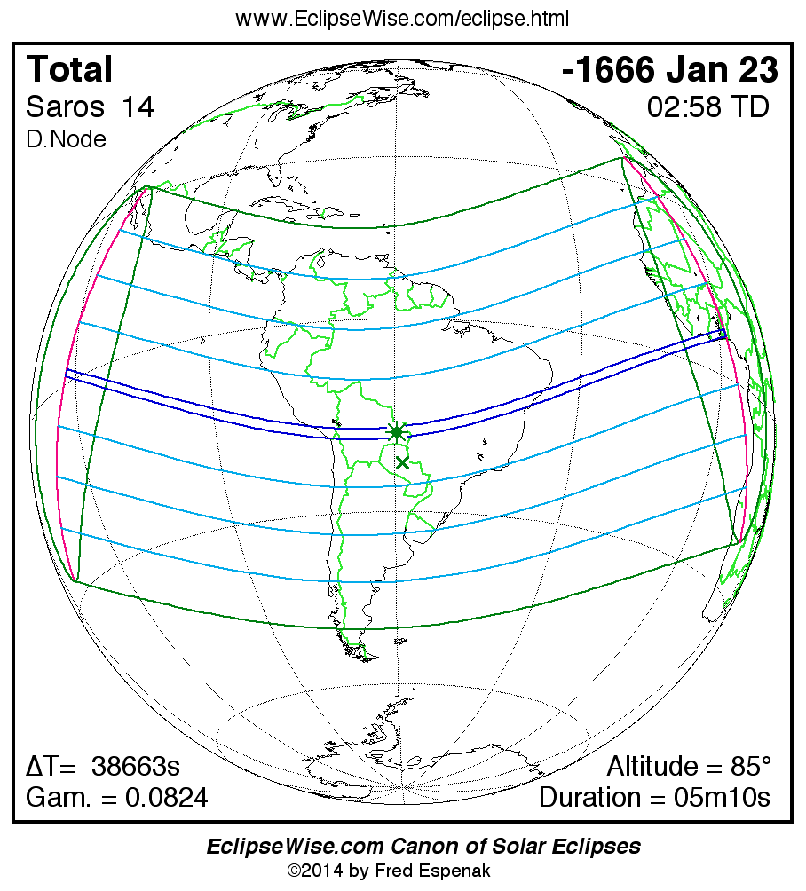 - Google Map: Total Solar Eclipse of -1666 Jan 24 - interactive map of the eclipse path