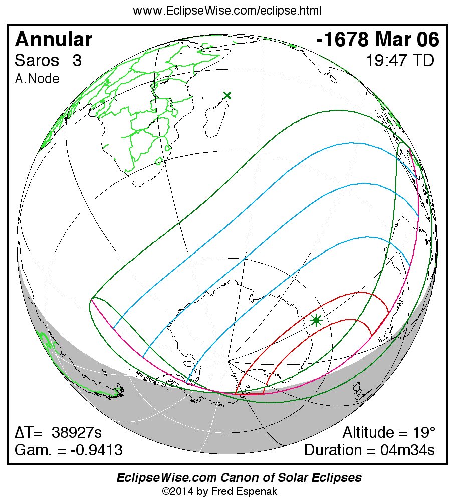 Annular Solar Eclipse of -1678 Mar 06 (1679 Mar 06 BCE)