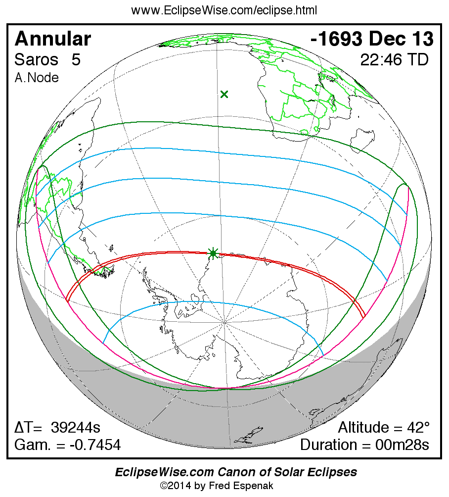 - Orthographic Map: Annular Solar Eclipse of -1693 Dec 13 - global map of eclipse visibility