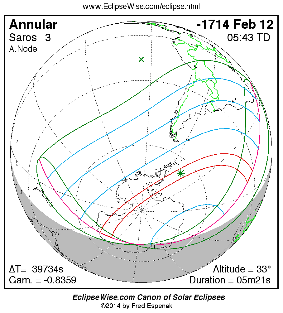 The instant of greatest eclipse takes place on -1714 Feb 13 at 05:43:21 TD (18:41:12 UT1).