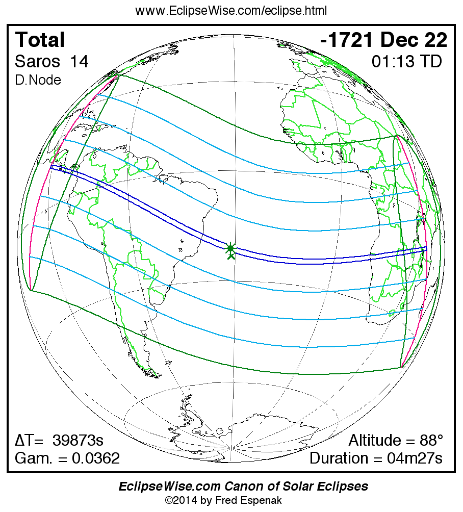 - Path Table: Total Solar Eclipse of -1721 Dec 23 - coordinates of the central line and path limits