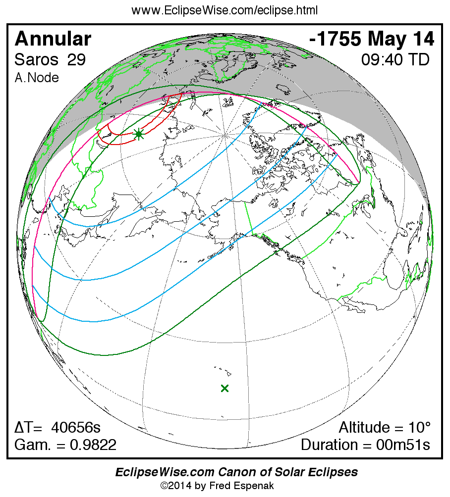 Annular Solar Eclipse of -1755 May 15 (1756 May 15 BCE)