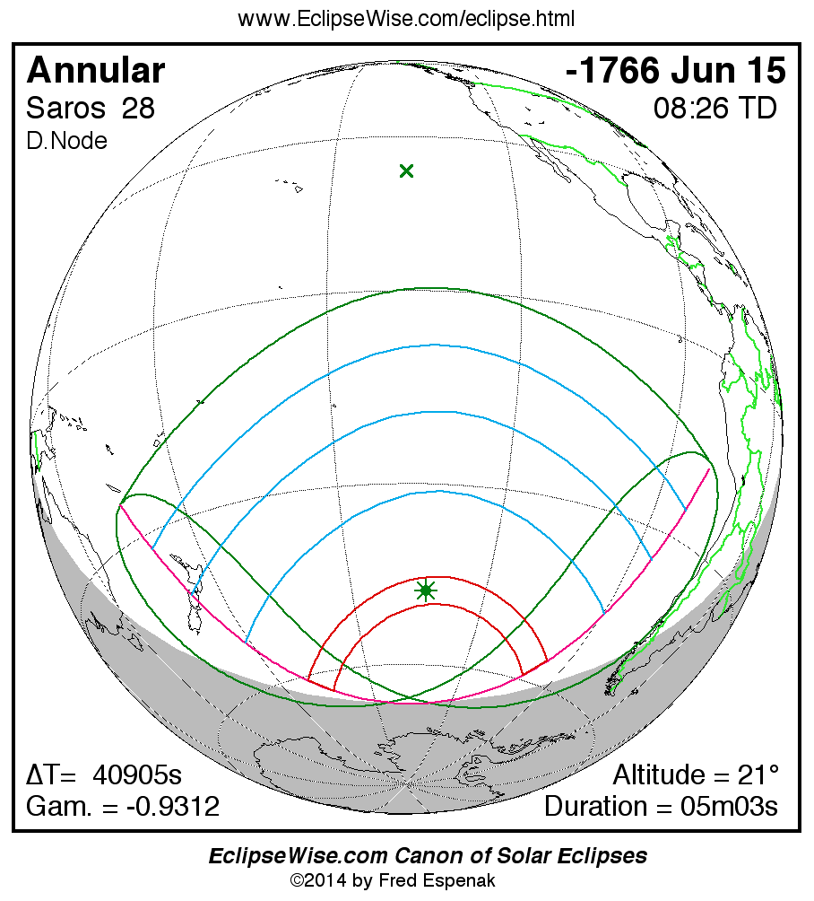 Annular Solar Eclipse of -1766 Jun 16 (1767 Jun 16 BCE)