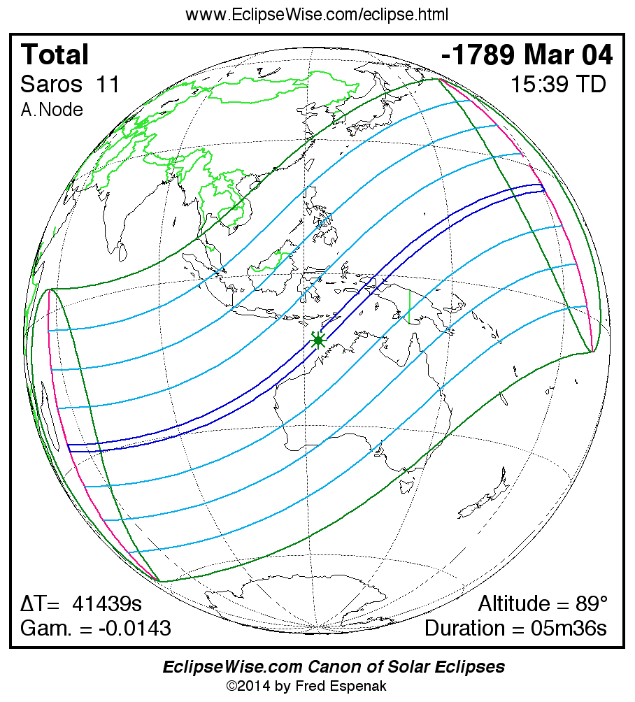 Total Solar Eclipse of -1789 Mar 04 (1790 Mar 04 BCE)