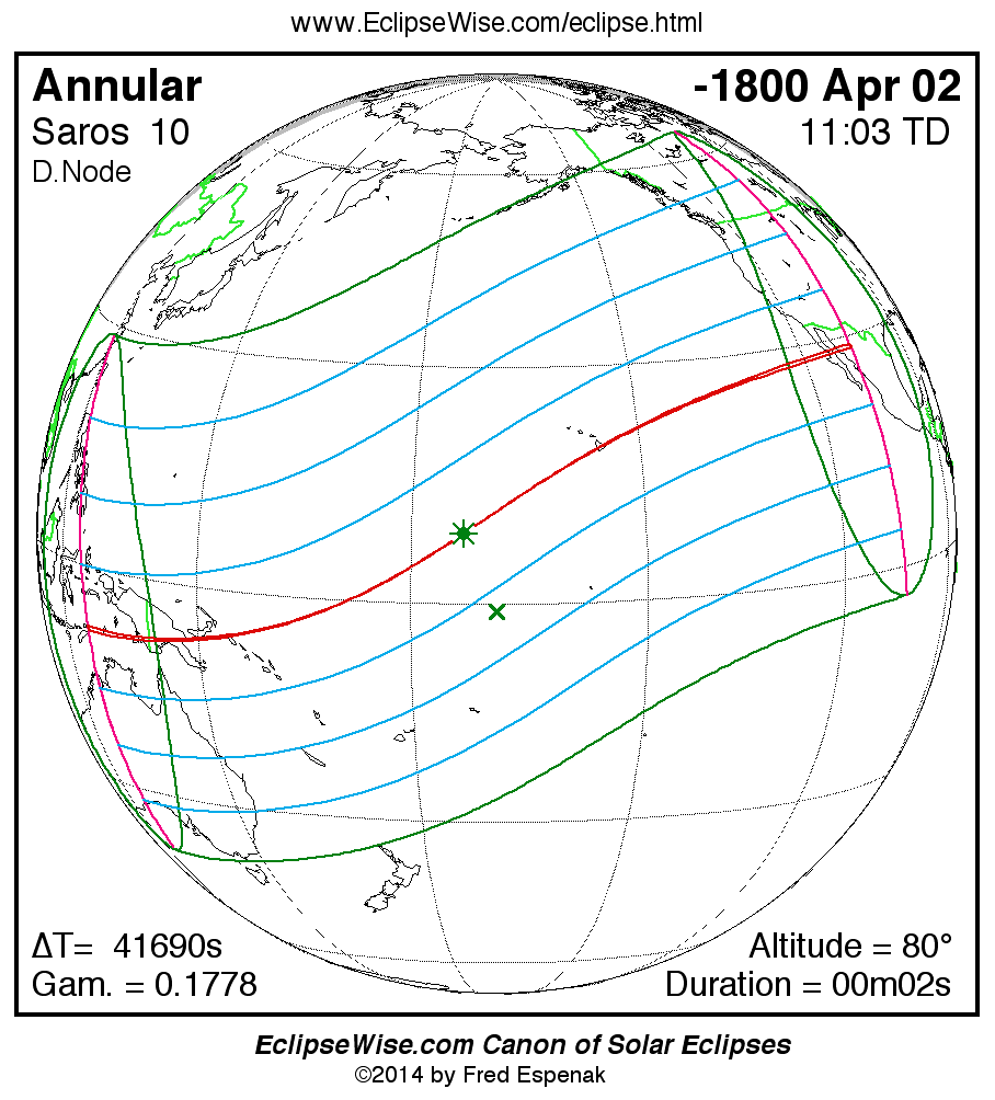 - Path Table: Annular Solar Eclipse of -1800 Apr 03 - coordinates of the central line and path limits