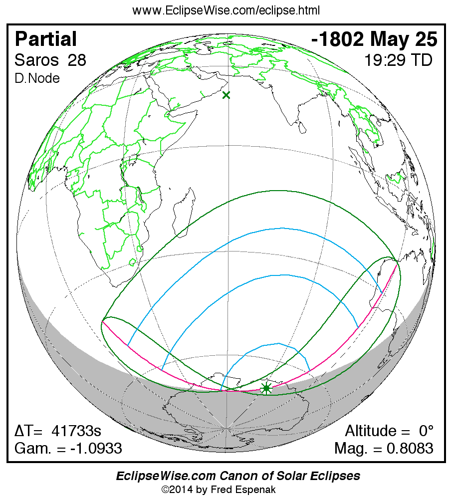 The instant of greatest eclipse takes place on -1802 May 25 at 19:29:16 TD (07:53:48 UT1).