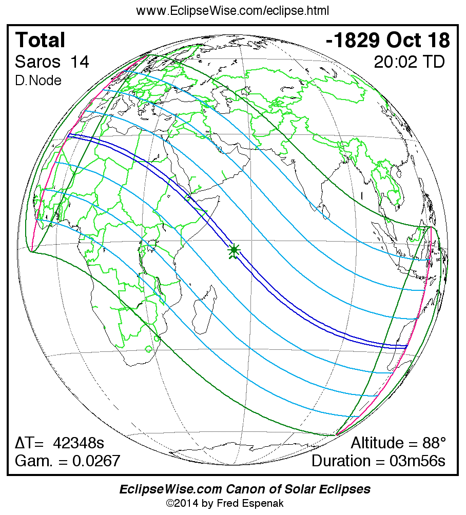 - Google Map: Total Solar Eclipse of -1829 Oct 18 - interactive map of the eclipse path
