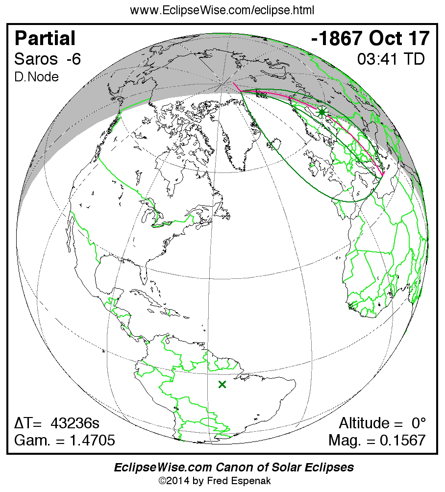 The instant of greatest eclipse takes place on -1867 Oct 18 at 03:41:01 TD (15:40:31 UT1).