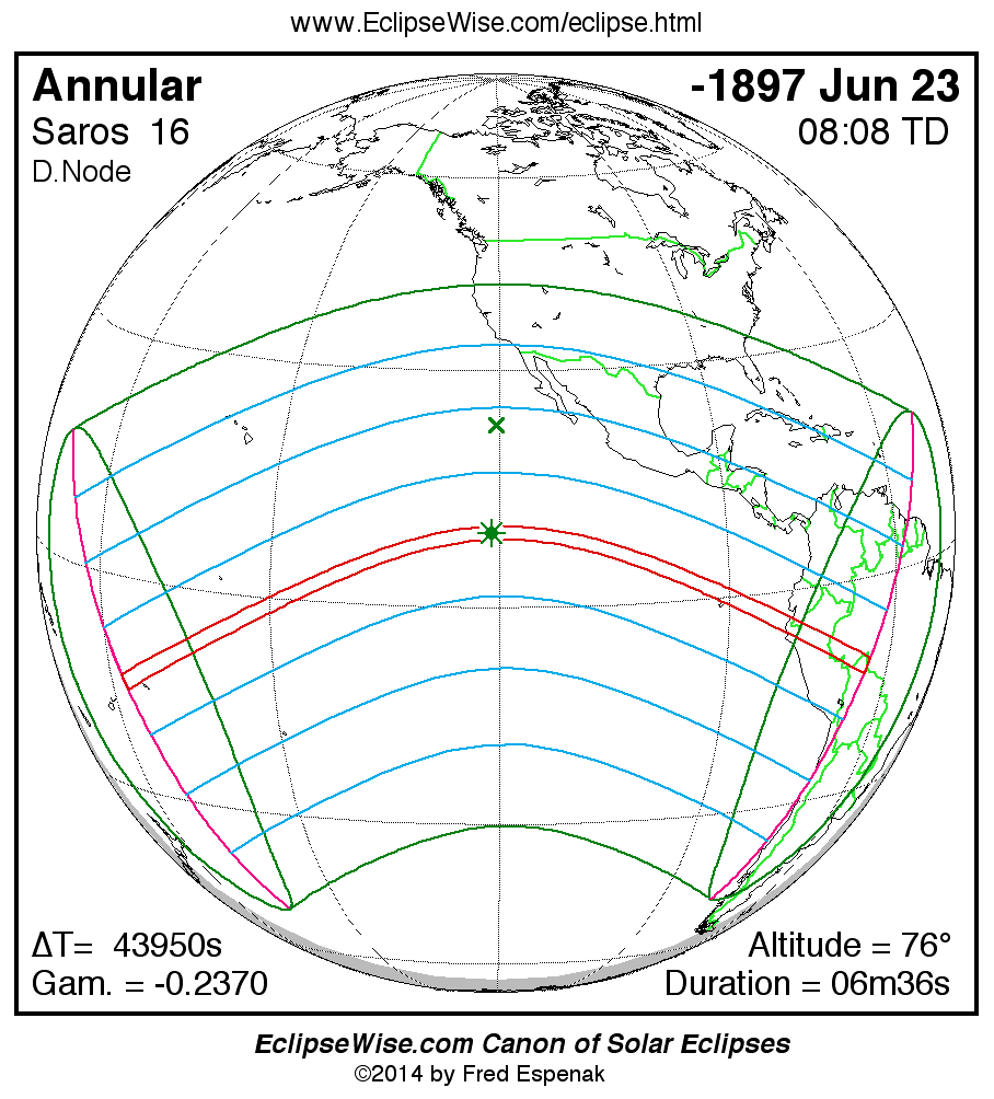 - Path Table: Annular Solar Eclipse of -1897 Jun 24 - coordinates of the central line and path limits