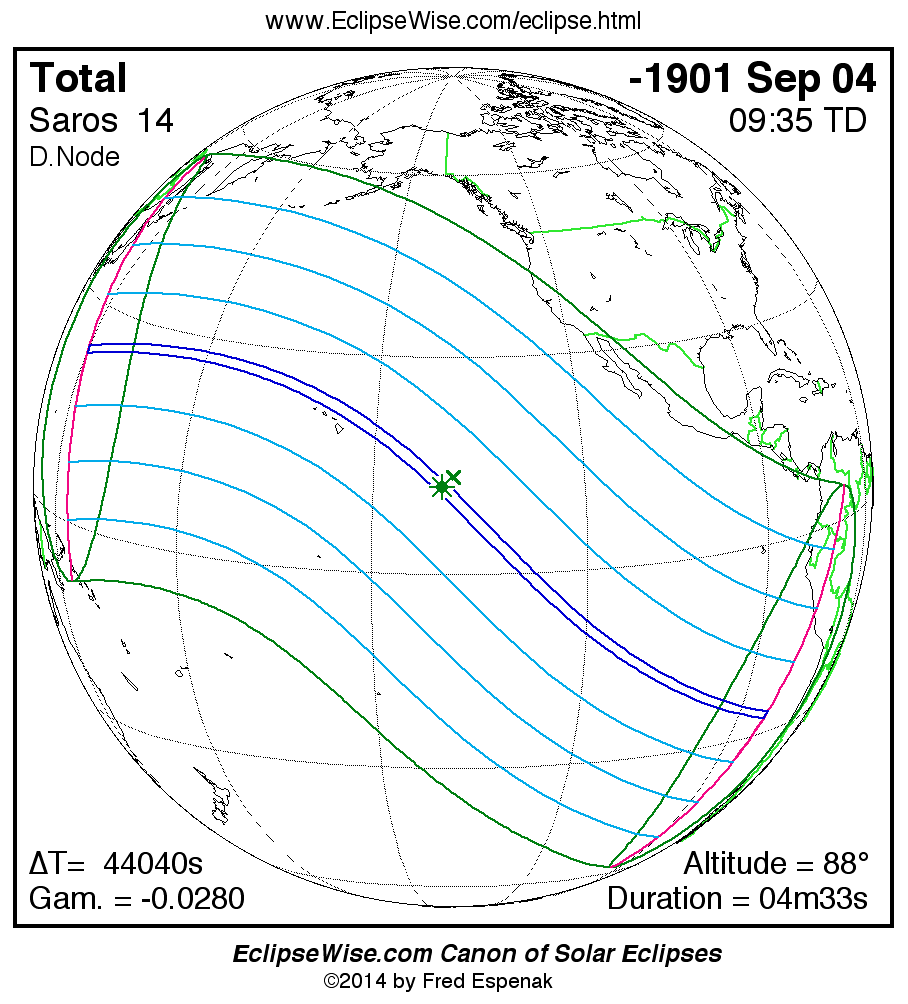 - Path Table: Total Solar Eclipse of -1901 Sep 05 - coordinates of the central line and path limits