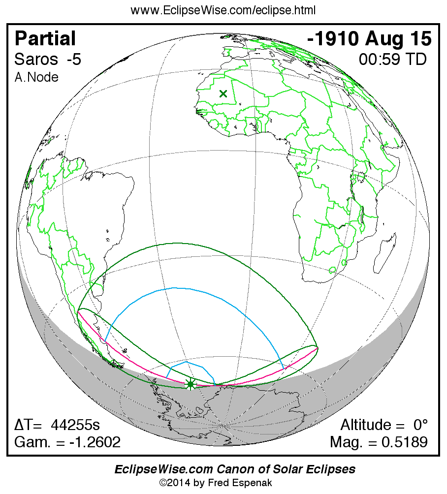 The instant of greatest eclipse takes place on -1910 Aug 16 at 00:58:37 TD (12:41:08 UT1).