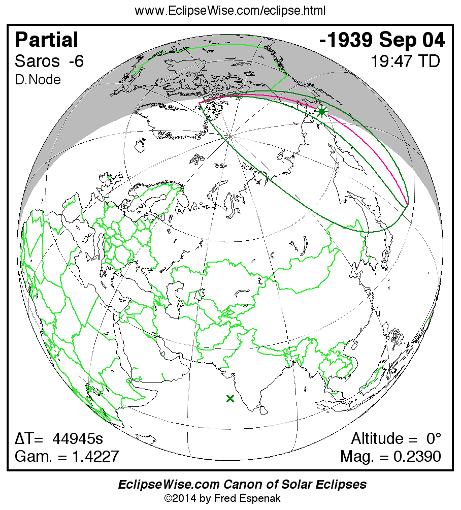 The instant of greatest eclipse takes place on -1939 Sep 04 at 19:46:43 TD (07:17:43 UT1).