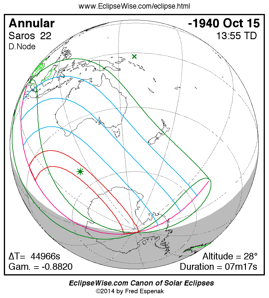 - Path Table: Annular Solar Eclipse of -1940 Oct 15 - coordinates of the central line and path limits