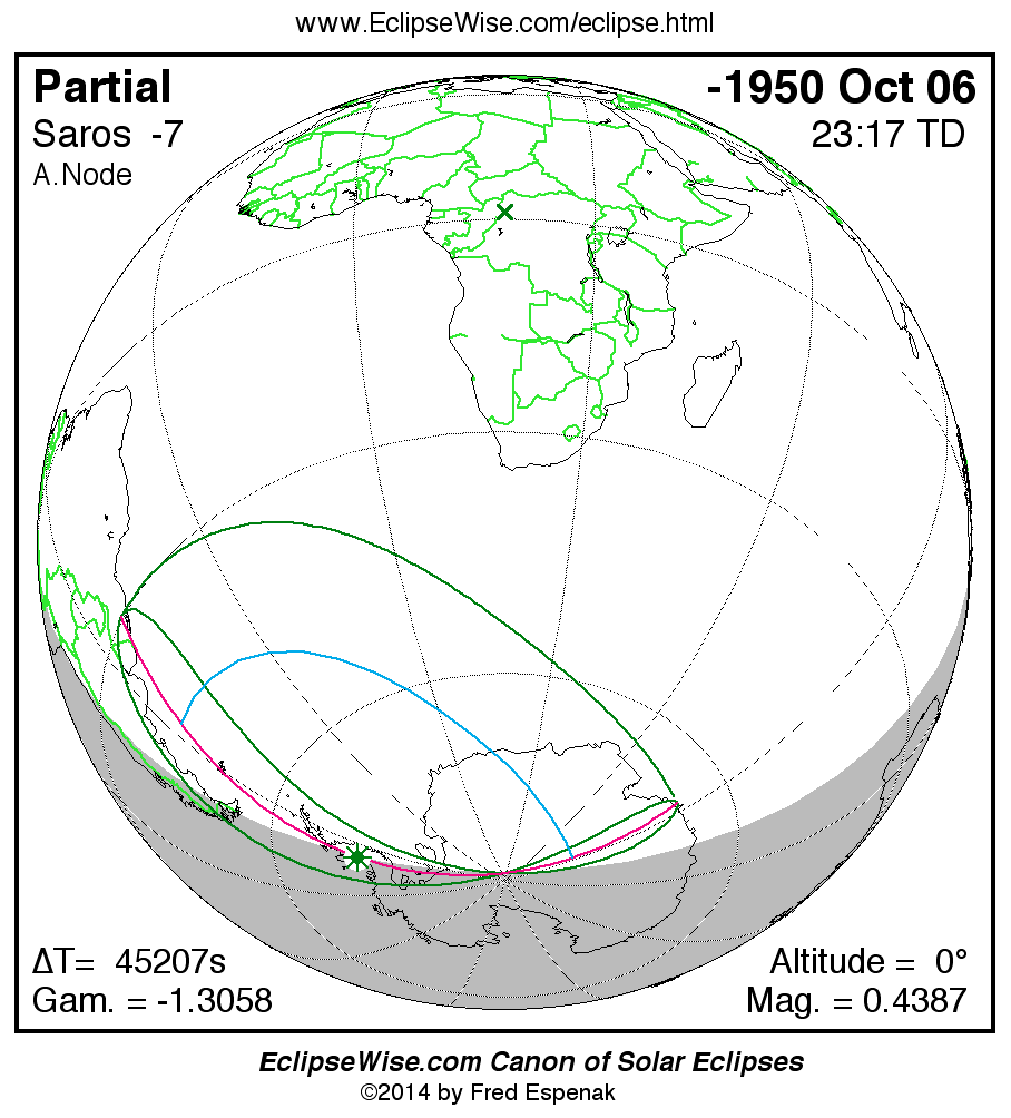The instant of greatest eclipse takes place on -1950 Oct 06 at 23:16:52 TD (10:43:30 UT1).