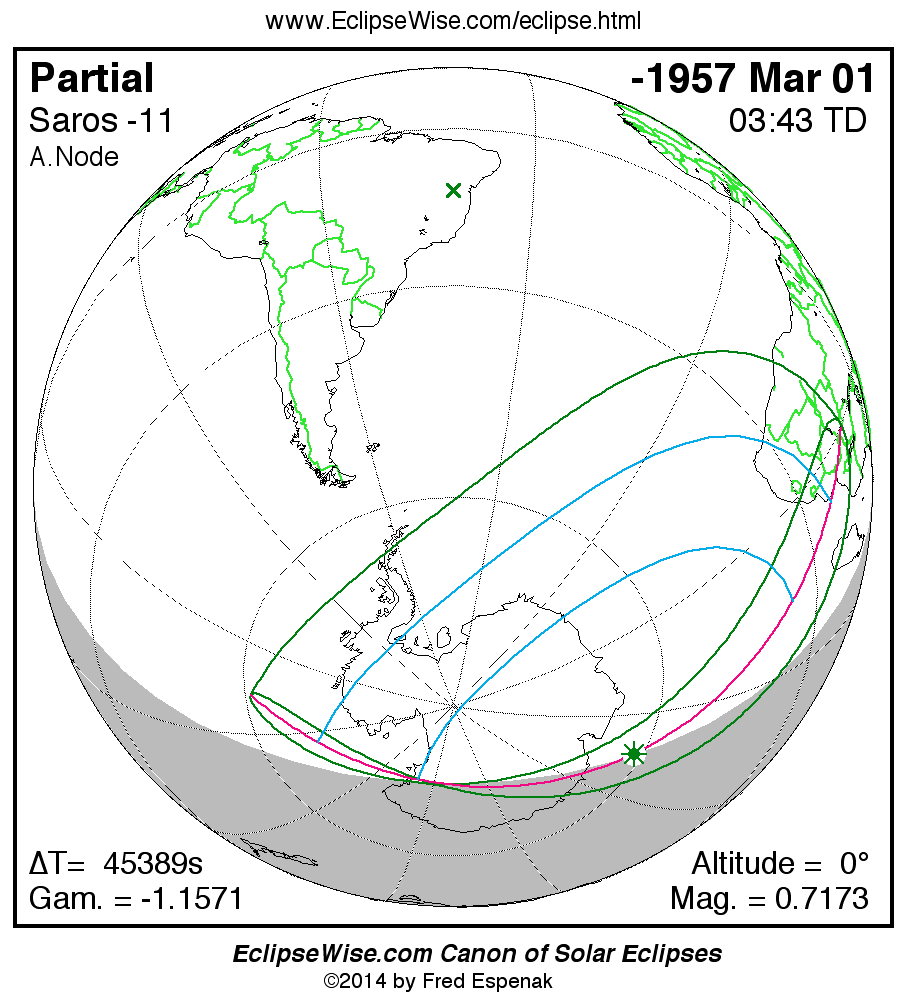 The instant of greatest eclipse takes place on -1957 Mar 02 at 03:43:09 TD (15:06:46 UT1).