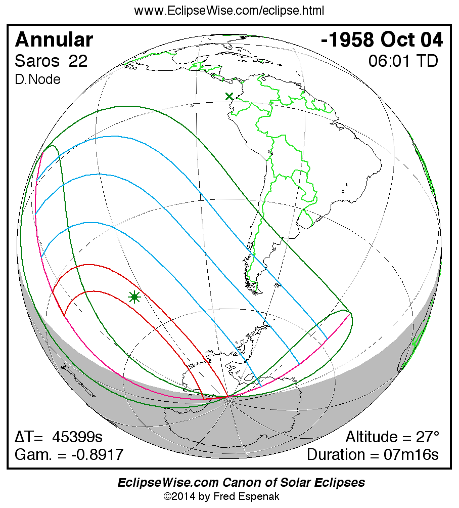 - Orthographic Map: Annular Solar Eclipse of -1958 Oct 05 - global map of eclipse visibility