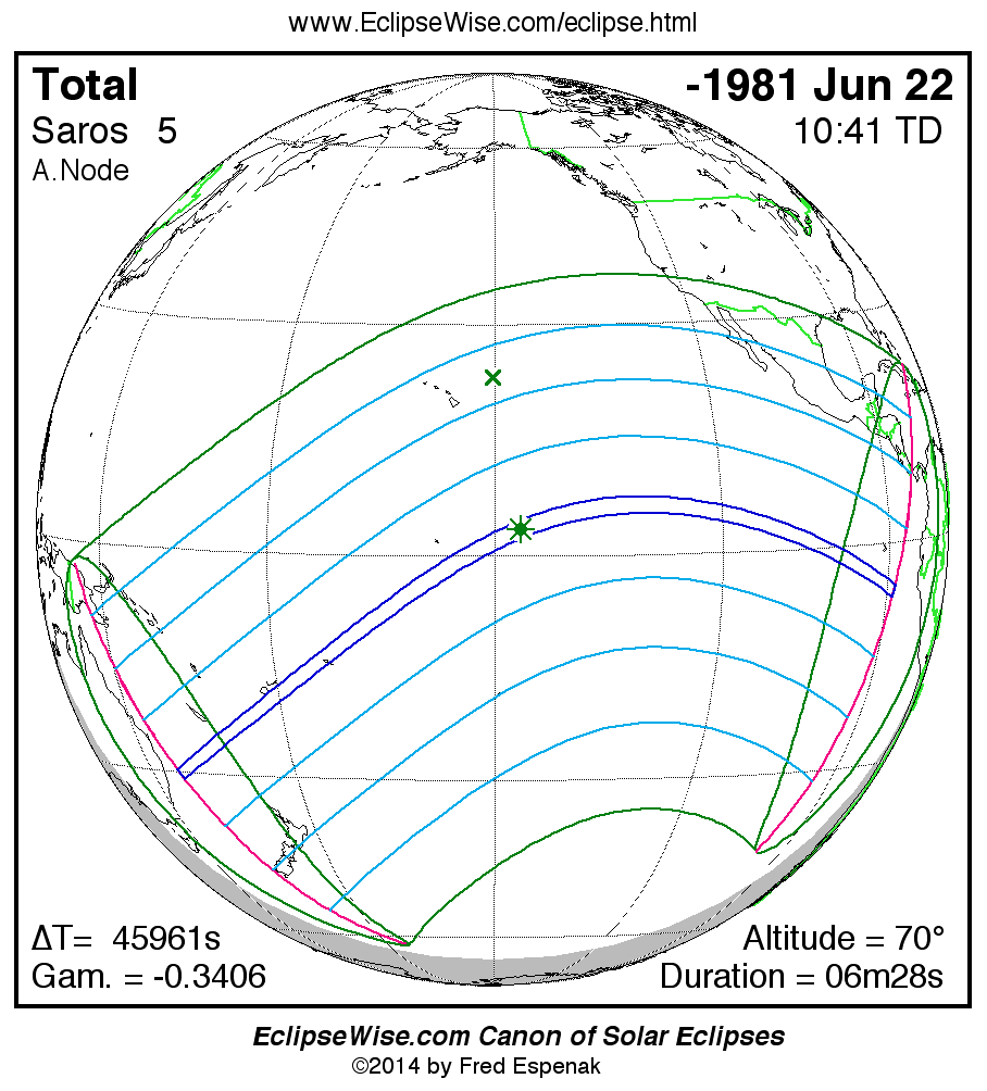 - Path Table: Total Solar Eclipse of -1981 Jun 23 - coordinates of the central line and path limits