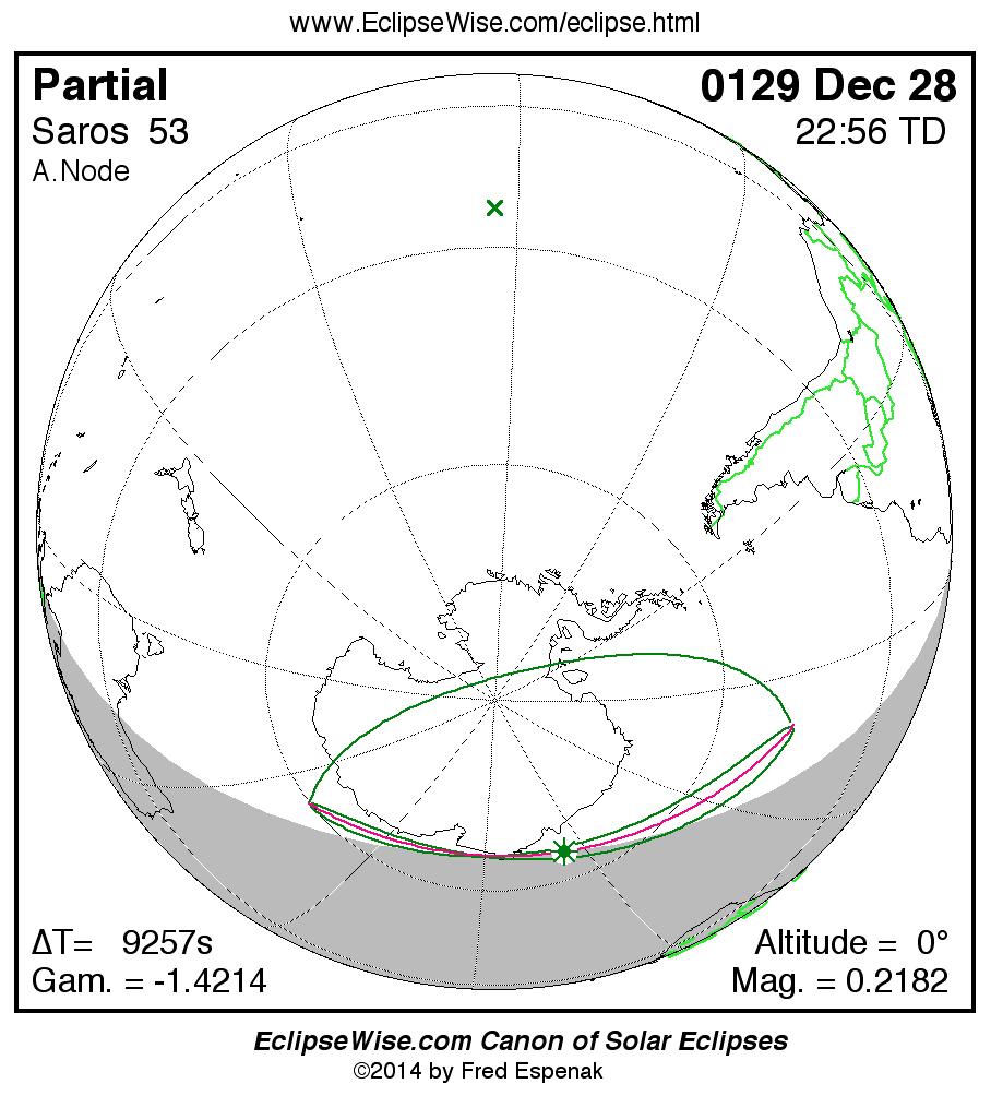 The instant of greatest eclipse takes place on 0129 Dec 28 at 22:56:25 TD (20:22:10 UT1).