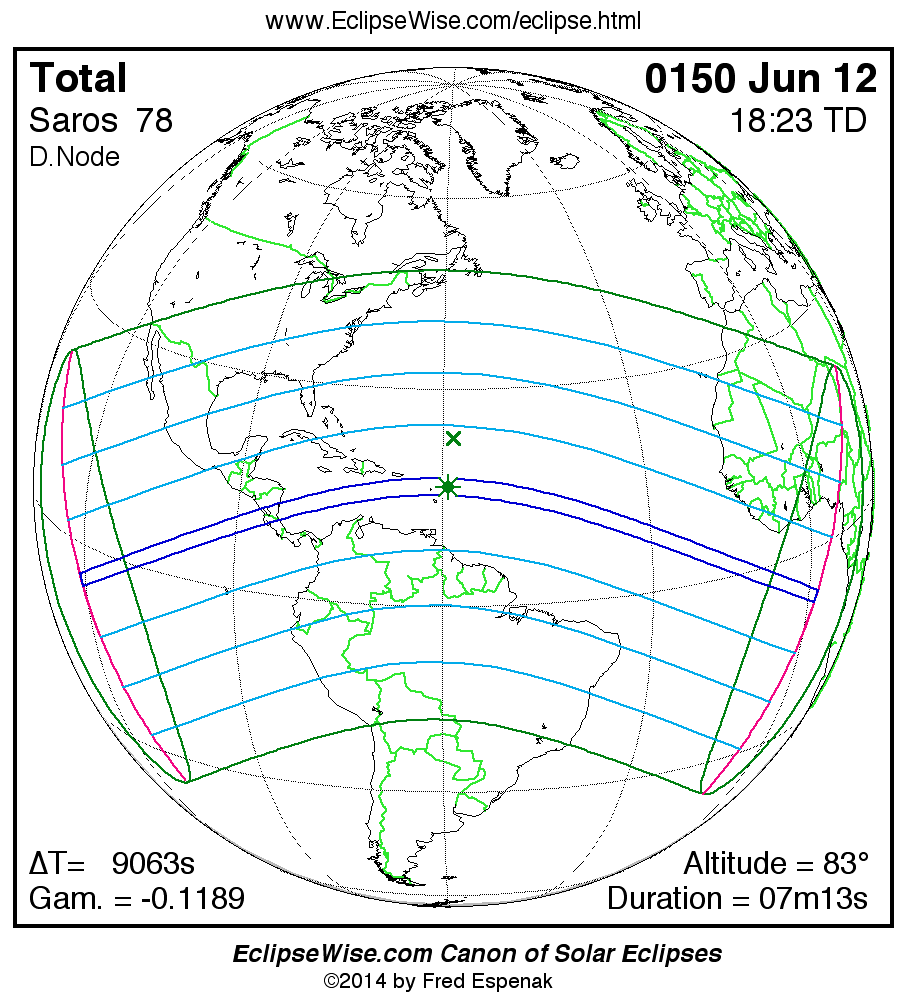 - Orthographic Map: Total Solar Eclipse of 0150 Jun 12 - global map of eclipse visibility