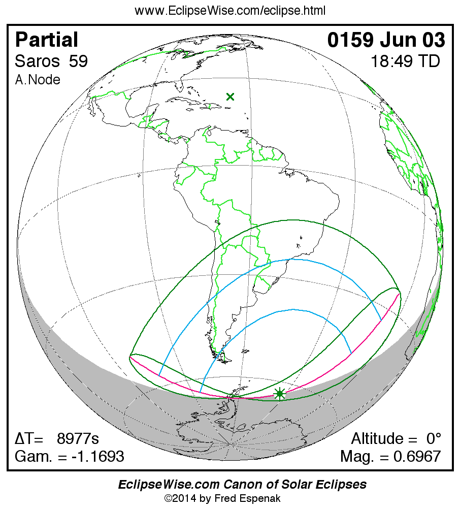 The instant of greatest eclipse takes place on 0159 Jun 03 at 18:49:23 TD (16:19:47 UT1).