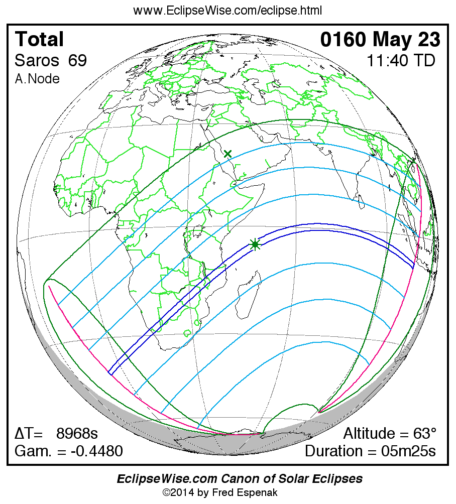 - Google Map: Total Solar Eclipse of 0160 May 23 - interactive map of the eclipse path
