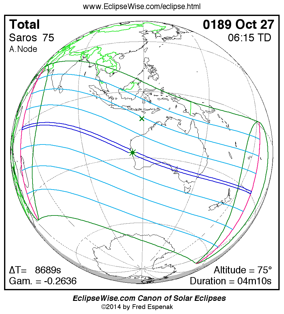 - Path Table: Total Solar Eclipse of 0189 Oct 27 - coordinates of the central line and path limits