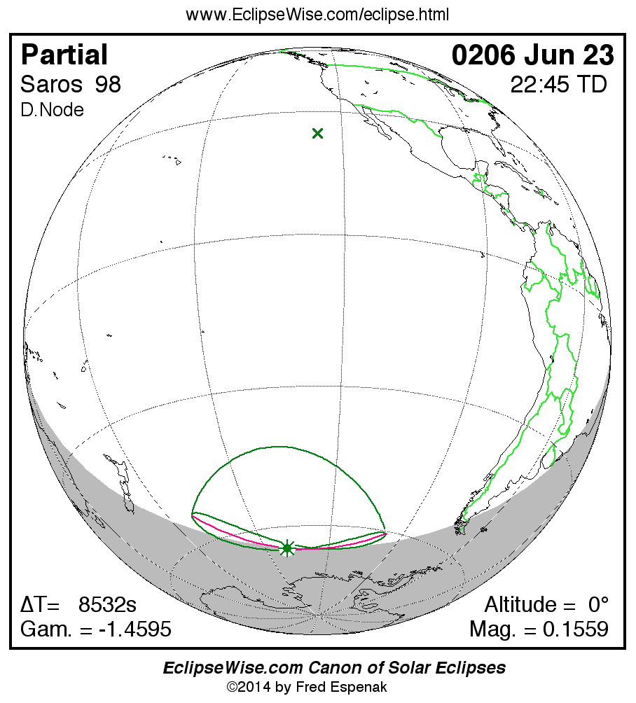 The instant of greatest eclipse takes place on 0206 Jun 23 at 22:44:33 TD (20:22:22 UT1).