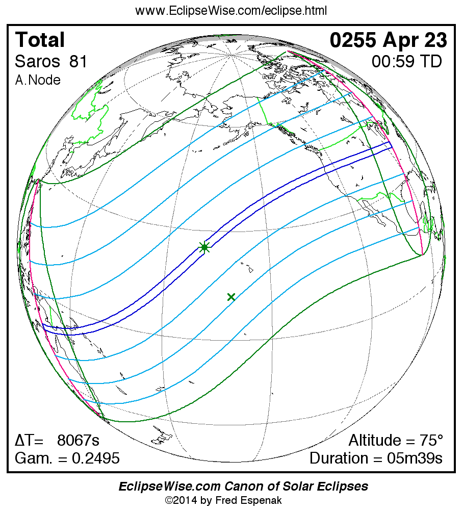 - Orthographic Map: Total Solar Eclipse of 0255 Apr 24 - global map of eclipse visibility