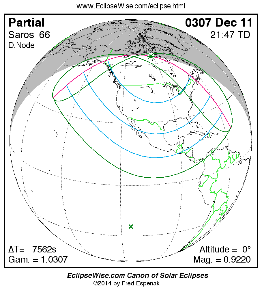 The instant of greatest eclipse takes place on 0307 Dec 11 at 21:46:57 TD (19:40:56 UT1).