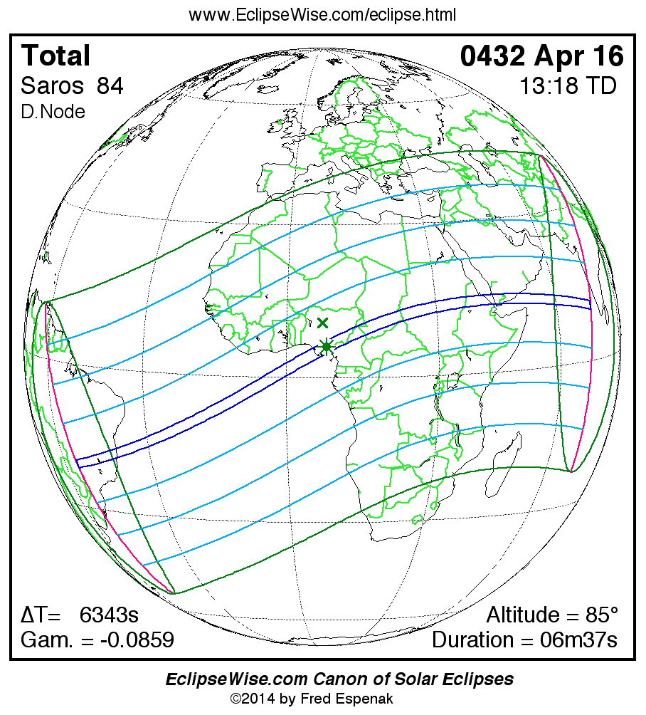 - Google Map: Total Solar Eclipse of 0432 Apr 16 - interactive map of the eclipse path