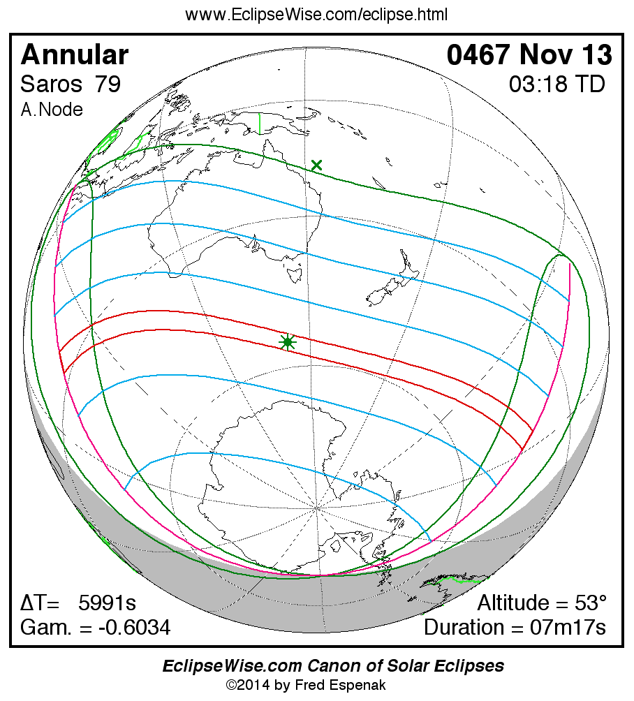 - Path Table: Annular Solar Eclipse of 0467 Nov 13 - coordinates of the central line and path limits