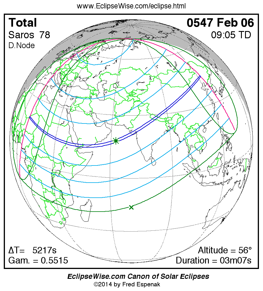 The total solar eclipse of 0547 Feb 06 is followed two weeks later by a partial lunar eclipse on 0547 Feb 20.