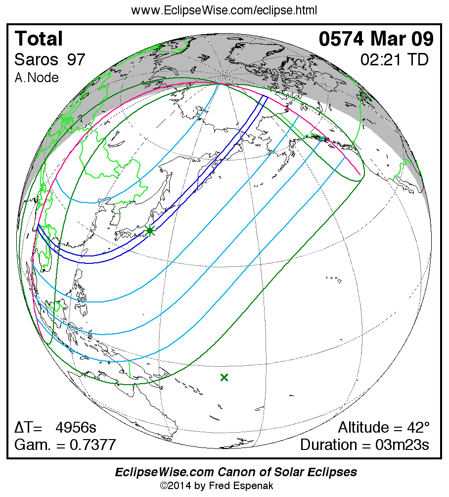 Total Solar Eclipse of 0574 Mar 09