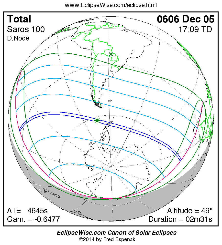 The instant of greatest eclipse takes place on 0606 Dec 05 at 17:08:34 TD (15:51:09 UT1).