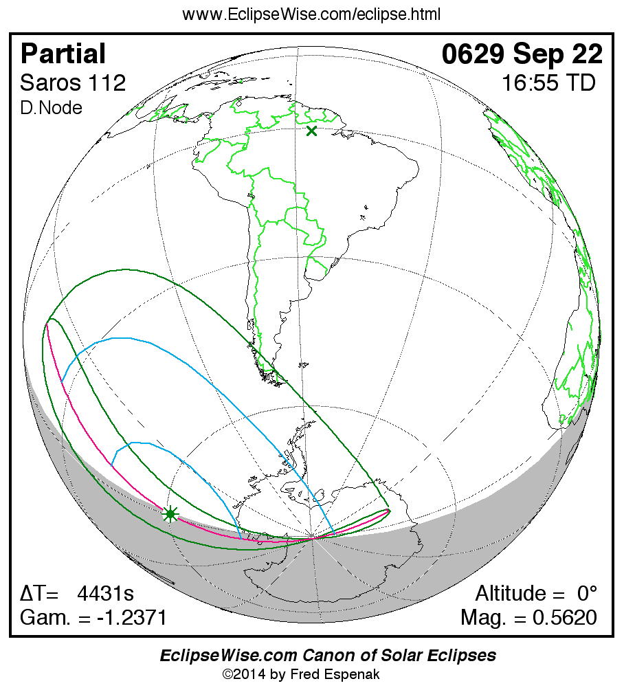 The partial solar eclipse of 0629 Sep 22 is preceded two weeks earlier by a total lunar eclipse on 0629 Sep 08.