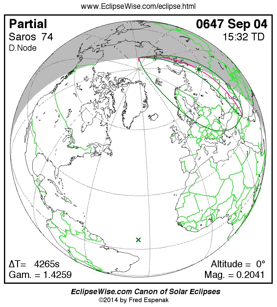 The instant of greatest eclipse takes place on 0647 Sep 04 at 15:31:33 TD (14:20:29 UT1).