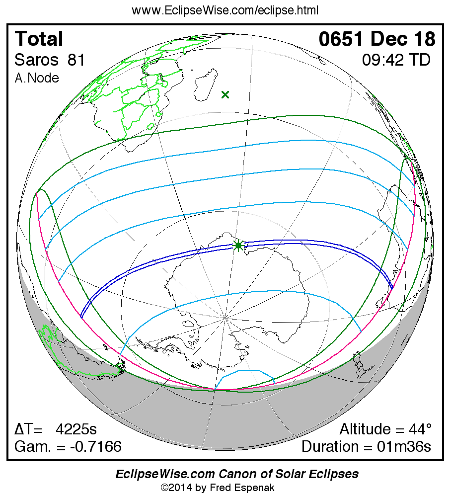 The instant of greatest eclipse takes place on 0651 Dec 18 at 09:42:20 TD (08:31:56 UT1).