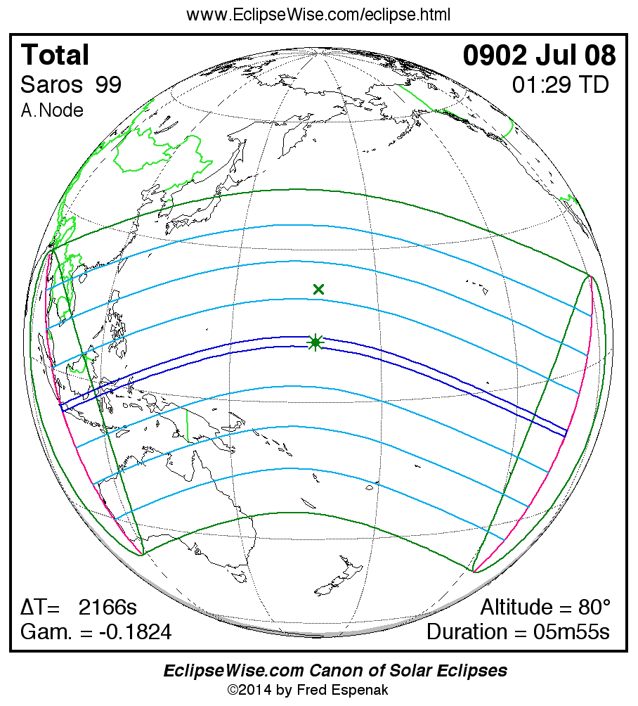 - Path Table: Total Solar Eclipse of 0902 Jul 08 - coordinates of the central line and path limits