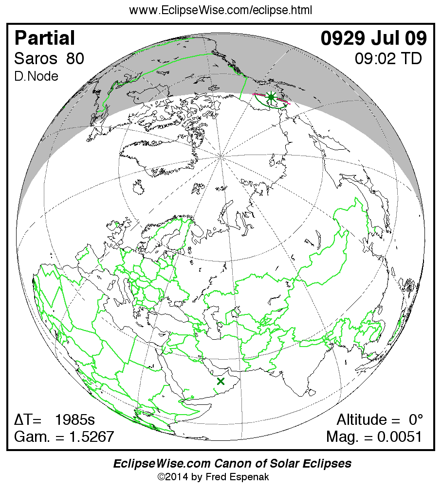 - Orthographic Map: Partial Solar Eclipse of 0929 Jul 09 - global map of eclipse visibility