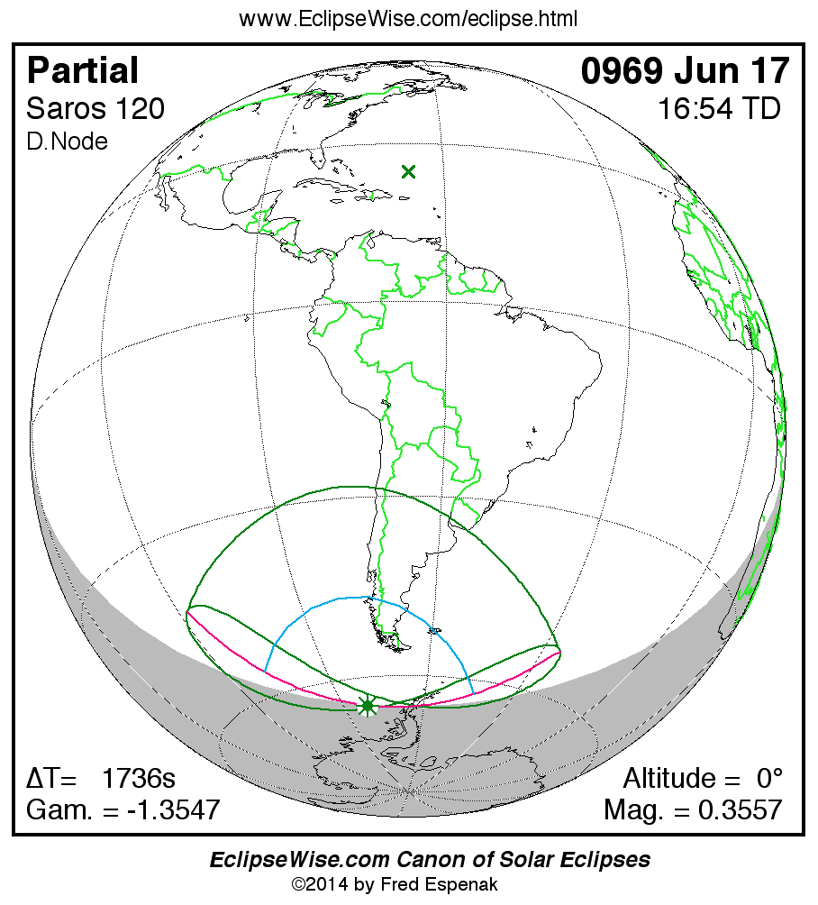 The instant of greatest eclipse takes place on 0969 Jun 17 at 16:54:20 TD (16:25:25 UT1).