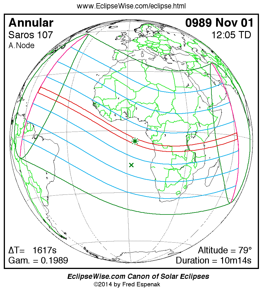 - Google Map: Annular Solar Eclipse of 0989 Nov 01 - interactive map of the eclipse path