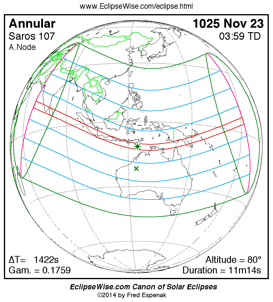 - Google Map: Annular Solar Eclipse of 1025 Nov 23 - interactive map of the eclipse path