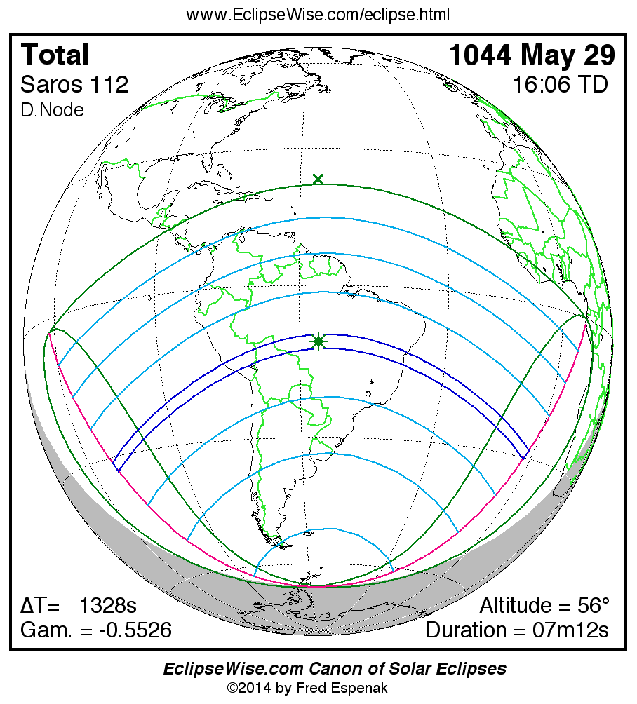 - Orthographic Map: Total Solar Eclipse of 1044 May 29 - global map of eclipse visibility