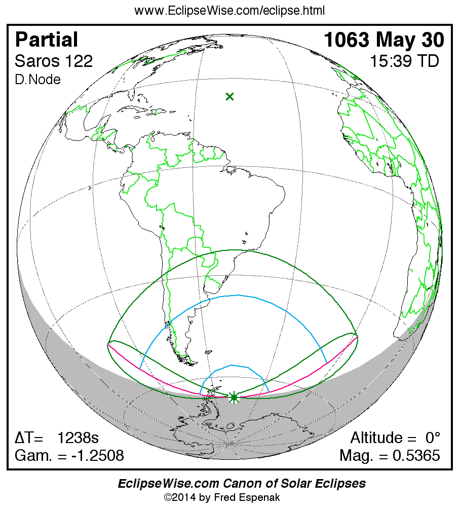 The instant of greatest eclipse takes place on 1063 May 30 at 15:39:29 TD (15:18:51 UT1).