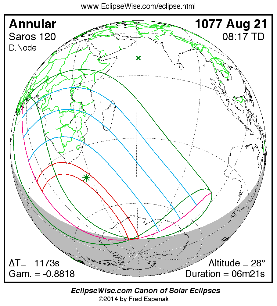 - Google Map: Annular Solar Eclipse of 1077 Aug 21 - interactive map of the eclipse path