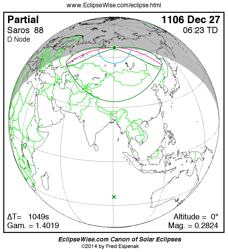 Partial Solar Eclipse of 1106 Dec 27