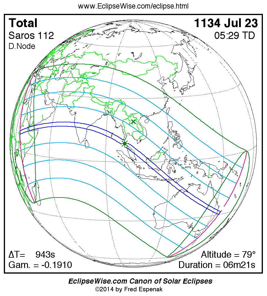 - Google Map: Total Solar Eclipse of 1134 Jul 23 - interactive map of the eclipse path