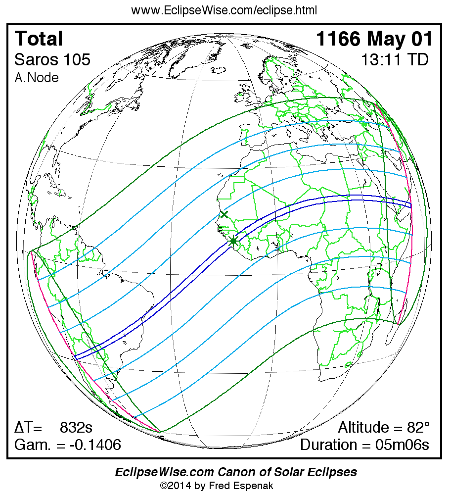 - Google Map: Total Solar Eclipse of 1166 May 01 - interactive map of the eclipse path